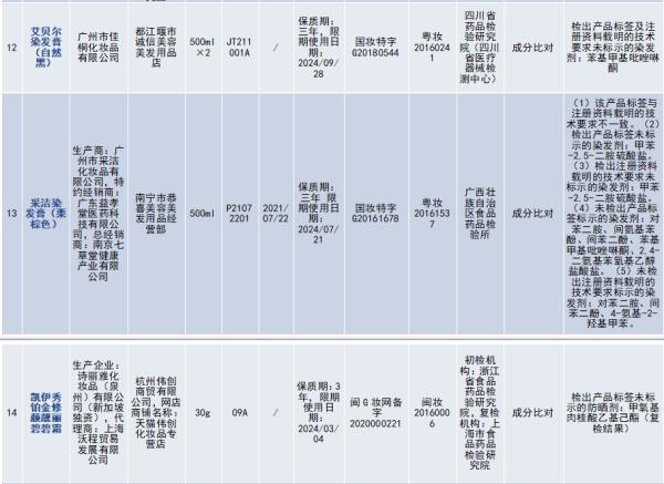 標(biāo)示為廣州市采潔化妝品有限公司生產(chǎn)的采潔染發(fā)膏(亞麻色)