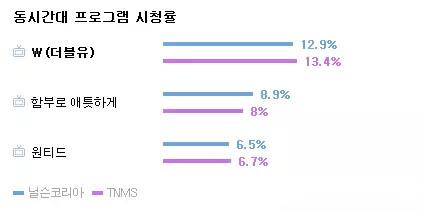 《W兩個(gè)世界》自7月播出以來(lái),同時(shí)段相比較,視聽(tīng)率可是穩(wěn)妥妥的榜上第一。