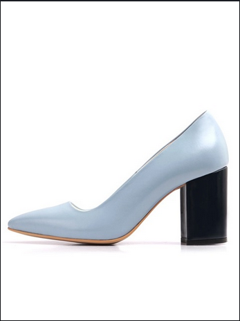 水藍(lán)色高跟鞋簡(jiǎn)約,淡雅素淡,來(lái)自于韓國(guó)時(shí)裝品牌RACHEL COX,韓幣99,000元,約折合人民幣584元。