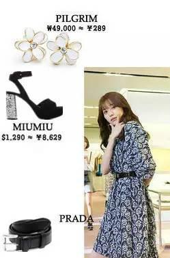 這款簡(jiǎn)潔大方又不失簡(jiǎn)約風(fēng)主題的連衣裙腰帶同樣是來(lái)自于PRADA品牌,定價(jià)在200,000韓元,約折合人民幣1800元。