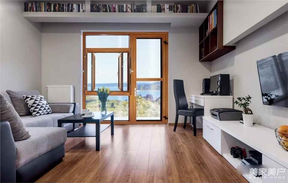 金色陽(yáng)光推拉門—窄框隱框設(shè)計(jì)。即使不能出門,也能看盡風(fēng)景變化。