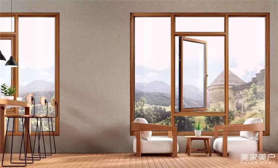 皇鉆135系列平開(kāi)窗—假中梃設(shè)計(jì)。推開(kāi)窗,視覺(jué)無(wú)阻擋,瞰山又?jǐn)埥南硎堋?/p>
