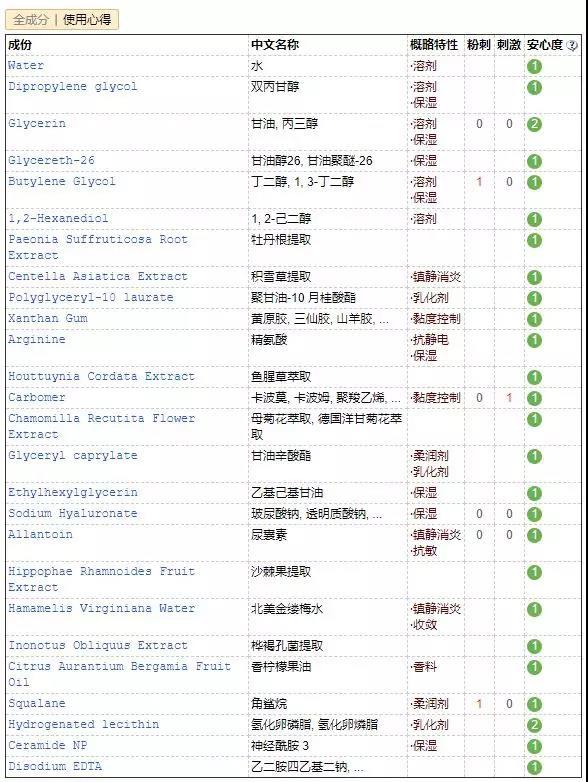 (注:該成分表來自美麗修行)