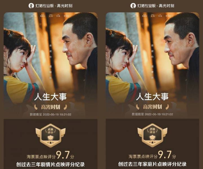 據(jù)燈塔專業(yè)版顯示,本片也創(chuàng)下近三年劇情片、家庭片點(diǎn)映評(píng)分雙紀(jì)錄!