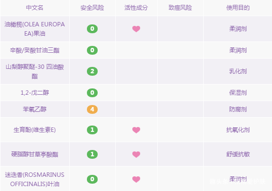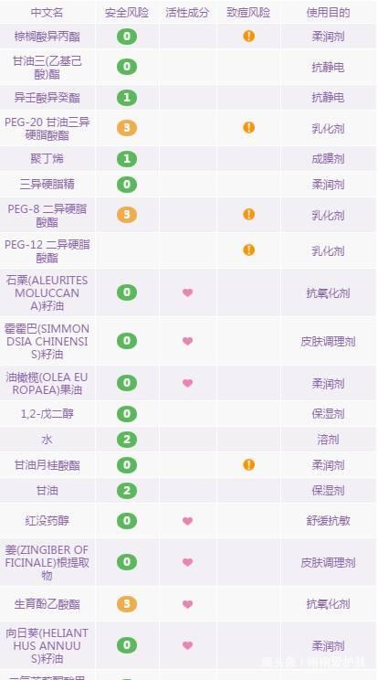 其實對于卸妝產(chǎn)品來說, 重要的選擇的標(biāo)準(zhǔn)不是安心度, 因為卸妝產(chǎn)品在臉上的時間很短暫, 這個卸妝產(chǎn)品的安心度得分, 大家只是看看好了, 得分越高的只能說明成分夠簡約,功效性成分包含的更少。