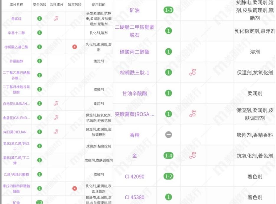 成分有我們熟悉的角鯊烷,金那個就是金箔了。白池花、金盞花和向日葵這些植物成分既溫和又能保濕舒緩。成分很,有香精但是沒有添加防腐劑。