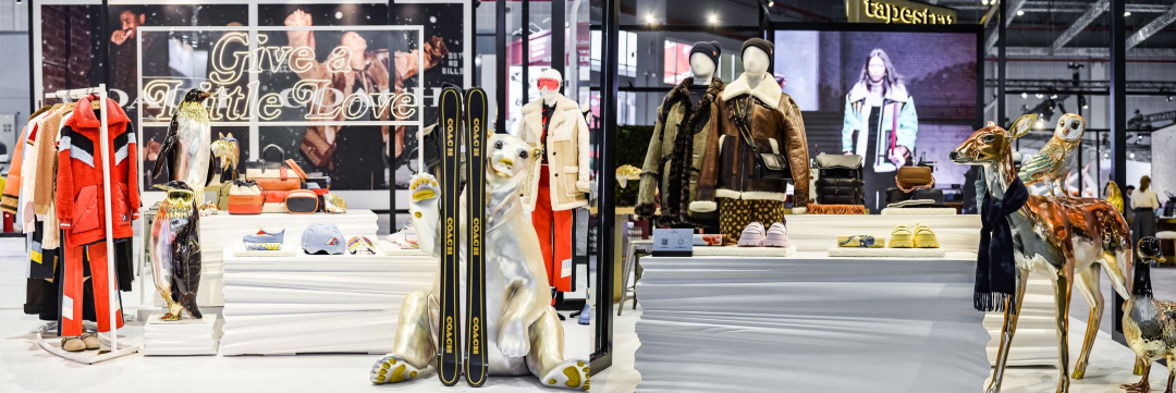 Coach新冬季系列閃耀亮相,滑雪元素與復(fù)古風(fēng)格輕盈交織,靈動詮釋“運(yùn)動生活時尚”;展臺設(shè)計亦匠心獨(dú)運(yùn),由明星家族成員演繹的趣味短片在Coach TV播出,溫馨歡樂;而一眾潮流新品與逗趣可愛的小動物們和諧共處,呈現(xiàn)愛與自然的奇妙融合。