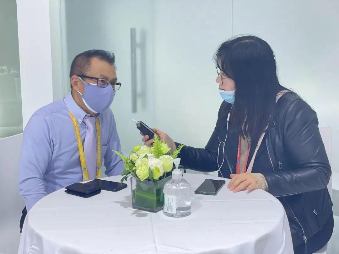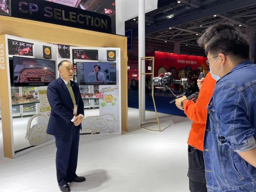 新華網(wǎng)記者在正大展館采訪薛增一副董事長