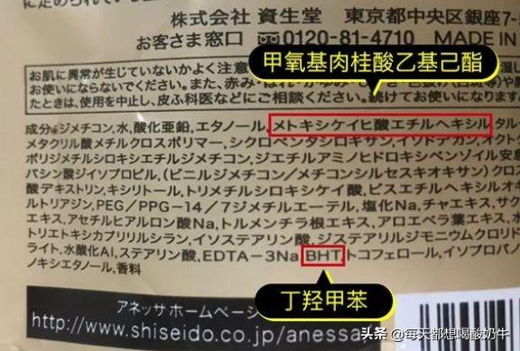 它里面的甲氧基肉桂酸乙基己酯和丁羥甲苯是孕婦和敏感人群需要遠離的成分