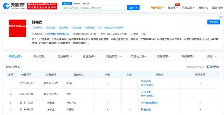 此外,一家以“日期越近越便宜”為賣點的電商平臺,2015、2018年接連獲得阿里巴巴兩輪融資,其中近一輪融資超億元。