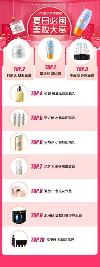 為滿(mǎn)足夏日囤貨需求,唯品會(huì)推出“夏日必囤美妝大賞”,為消費(fèi)者們奉上一份今年夏天具參考價(jià)值的購(gòu)物指導(dǎo)。上榜的夏日單品均是根據(jù)產(chǎn)品在平臺(tái)的銷(xiāo)量及增速、用戶(hù)反饋和買(mǎi)手推薦等多維度數(shù)據(jù)統(tǒng)計(jì)得出,涵蓋防曬、底妝、彩妝、面部護(hù)理、身體護(hù)理等品類(lèi),一張榜單搞定夏日所有變美好物。