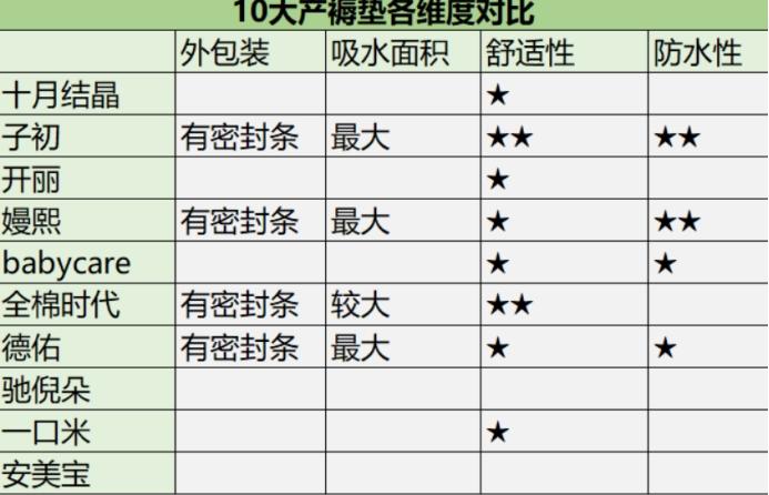 建議帶大號(hào)(60*90)的,各個(gè)牌子護(hù)理墊對(duì)比如下圖