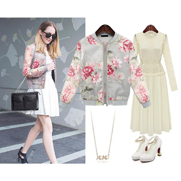 5.2015夏裝新款歐根紗印花防曬衣防紫外線女棒球服女開衫