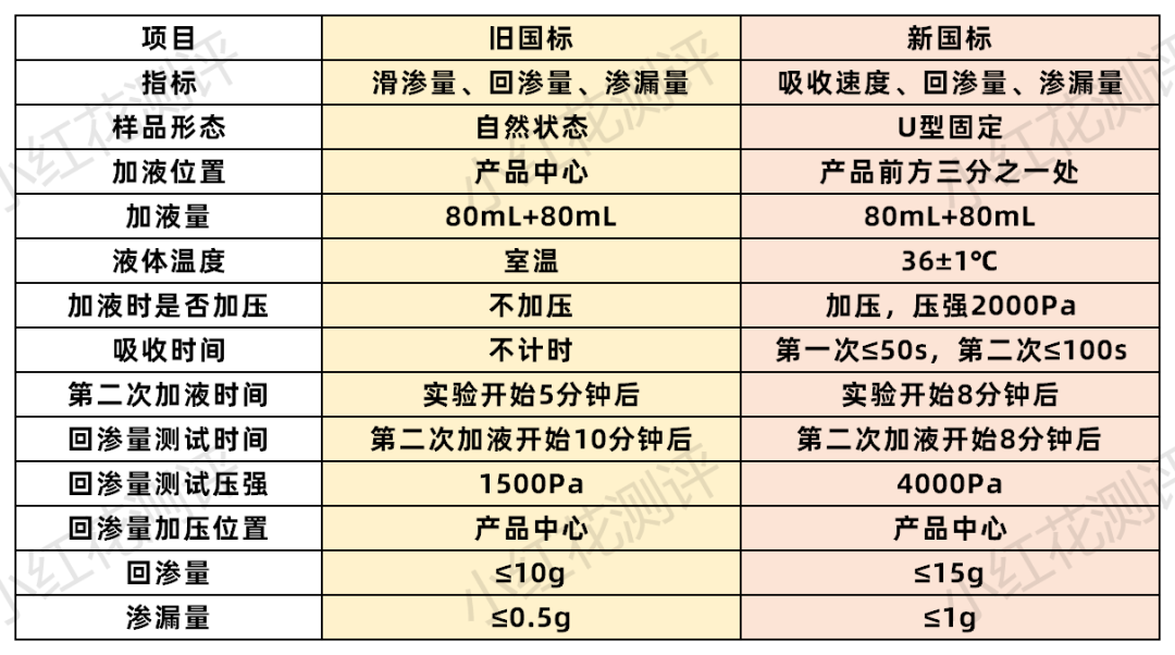 與舊國(guó)標(biāo)相比,新國(guó)標(biāo)中,拉拉褲的滲透性能指標(biāo)、測(cè)試方法均有所改動(dòng),花爸總結(jié)如下: