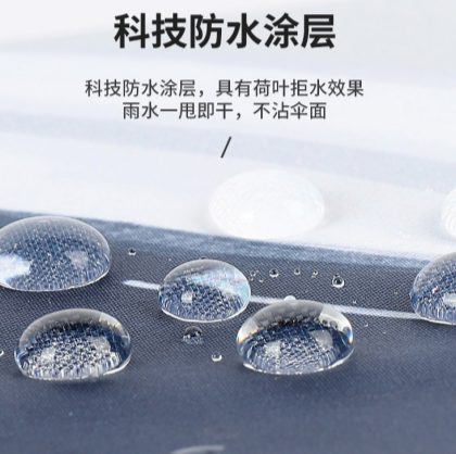 水珠接觸傘面形成無(wú)法滲入的“球狀水珠”,就像水珠落在荷葉上一樣。