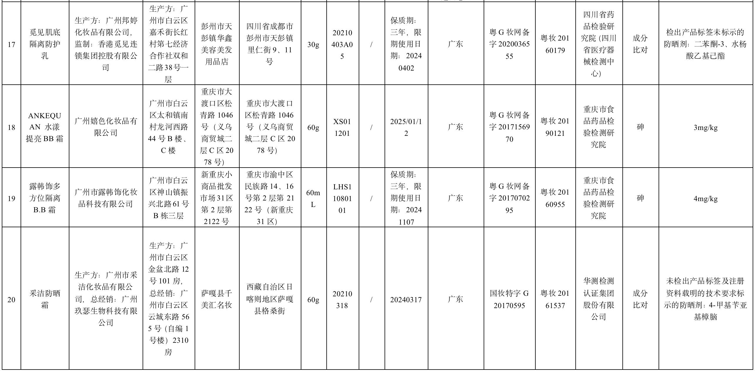 推薦你用SKIN79 粉鉆BB霜! 清薄不油膩!適來自合這樣的季節(jié)! 防曬指數(shù)為25! 有時間可以去我拍拍店鋪溜達下! 夢美化妝品品牌折扣店30日,藥監(jiān)局發(fā)布20批次不符合規(guī)定化妝品的通告。通告指出:在2022年化妝品監(jiān)督抽檢工作中,經(jīng)廣西壯族自治區(qū)食品藥品檢驗所等單位檢驗,標示為廣州市浩鑫精細化工有限公司生產(chǎn)的浩鑫染發(fā)膏(亞麻褐色)等20批次化妝品不符合規(guī)定(見下圖)。