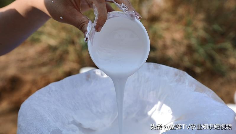 其次,這款產品質地細膩,不會沉淀,攪拌均勻后可直接全樹噴霧,不會堵塞噴頭;使用時就用平常打農藥的噴霧器就可以,也可用大型農藥機噴。