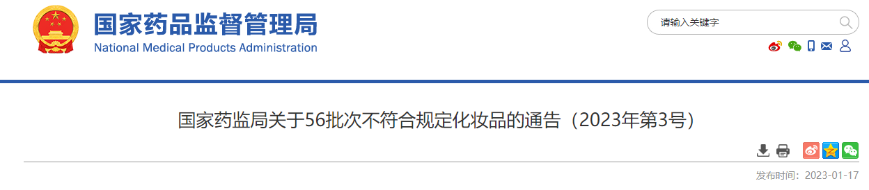 中國(guó)質(zhì)量新聞網(wǎng)訊 2023年1月17日,藥監(jiān)局網(wǎng)站發(fā)布關(guān)于56批次不符合規(guī)定化妝品的通告(2023年第3號(hào))。通告稱(chēng),在2022年化妝品監(jiān)督抽檢工作中,經(jīng)廣東省藥品檢驗(yàn)所等單位檢驗(yàn),產(chǎn)品標(biāo)簽標(biāo)示為廣州市三榮化妝品有限公司生產(chǎn)的威品染發(fā)膏(咖啡色)等56批次化妝品(含牙膏,下同)不符合規(guī)定。