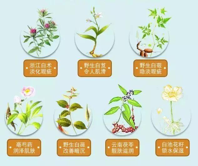 元代醫(yī)書(shū)中記載的七子白方子,由白術(shù)、白芷、白芨、白茯苓、白芍、白僵蠶、白蘞按比例配比而成。根據(jù)醫(yī)學(xué)典籍記載,均具有駐顏祛斑、令人肌滑、隱淡瑕疵的功。