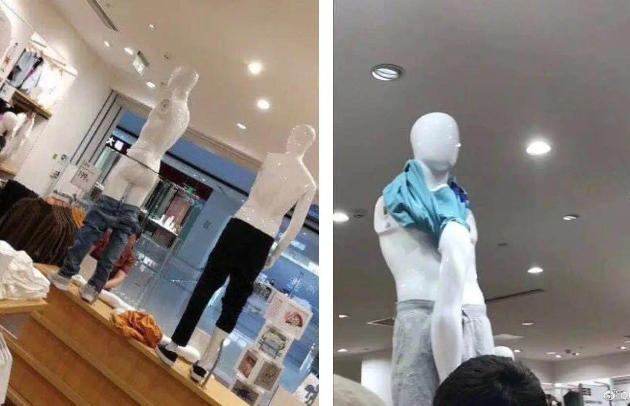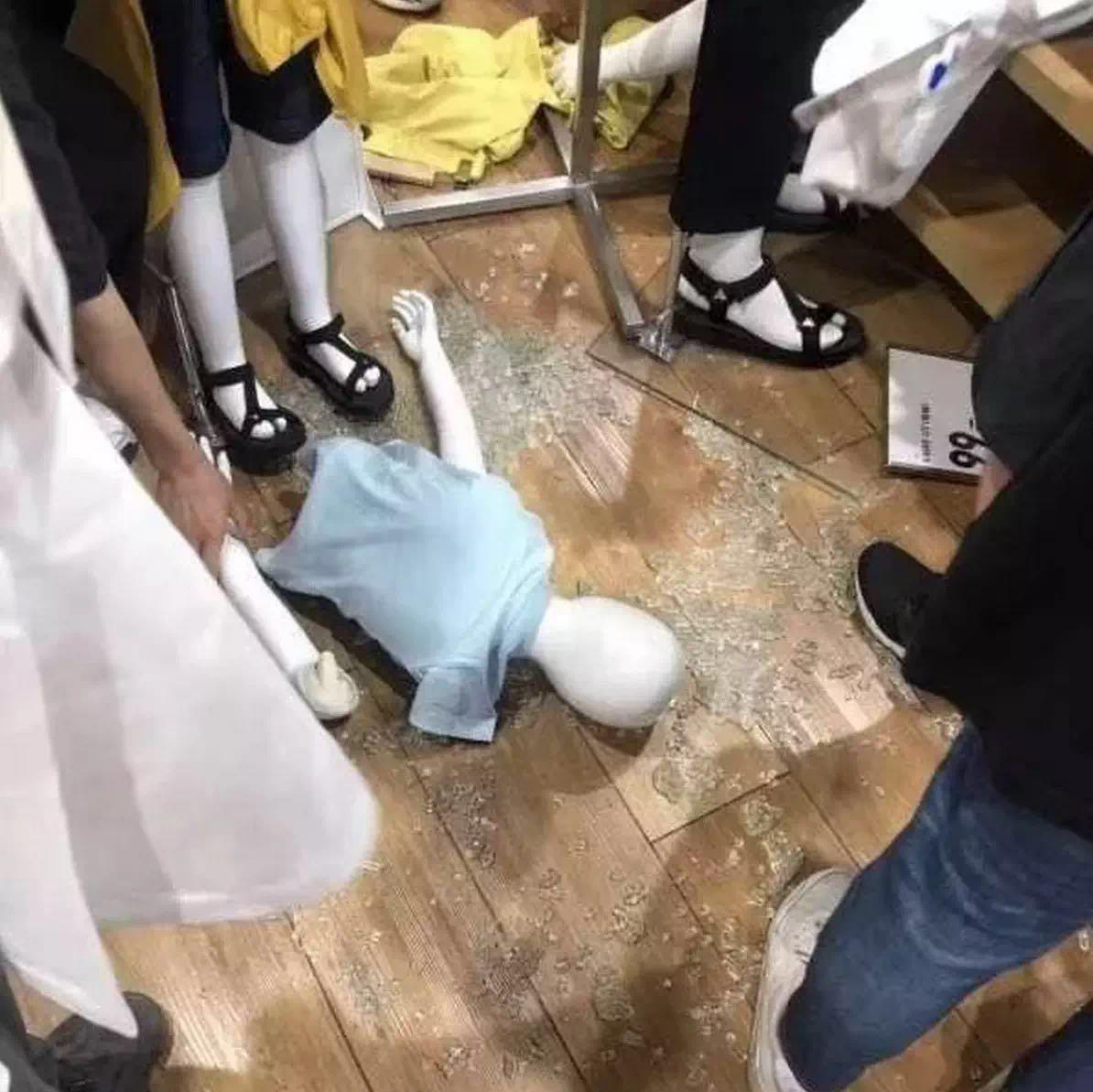 試衣模特也“遍體連傷”,褲子都不剩。就連店鋪里的玻璃也被人潮的擁擠而導致碎裂。