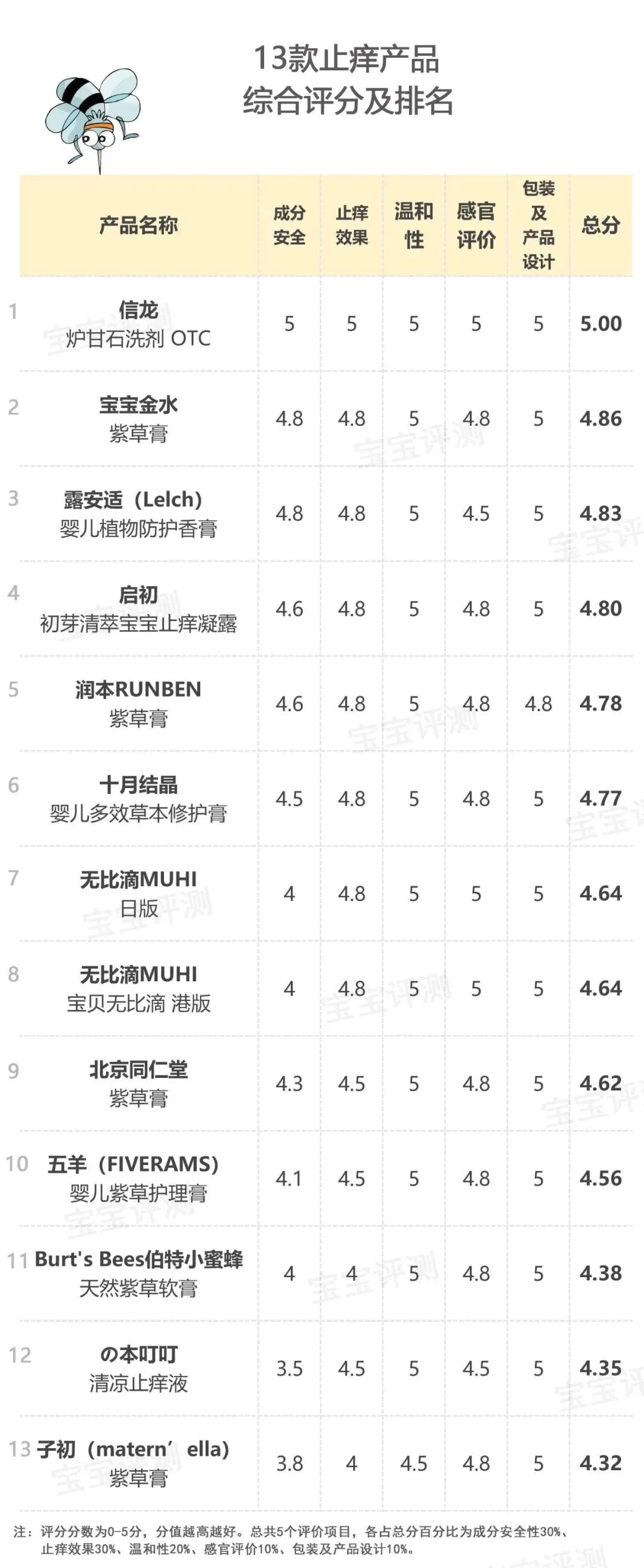 綜合起來,笨爸爸給13款止癢產(chǎn)品進(jìn)行了評分,如下: