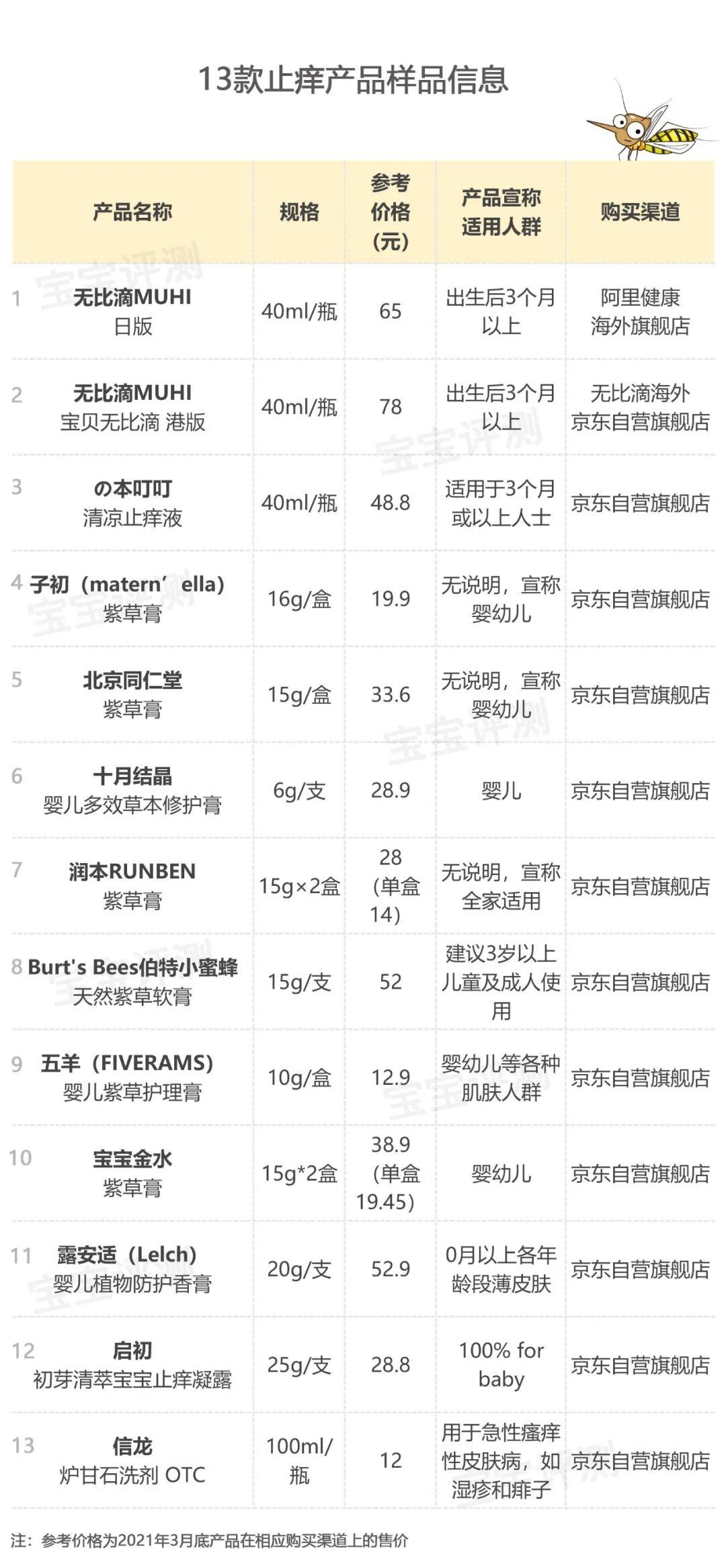 一、評測樣品綜合網(wǎng)購平臺銷量以及讀者們的意見,這次列入評測的寶寶止癢產(chǎn)品一共有13款。