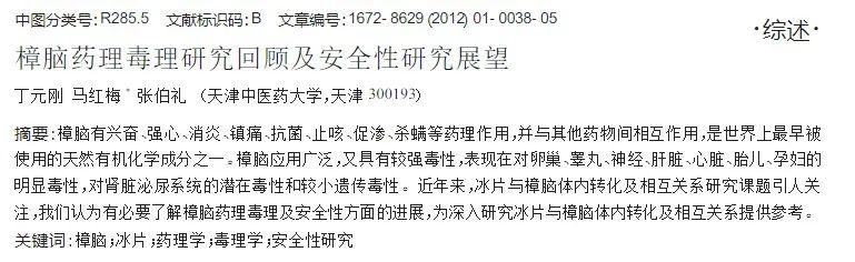 (丁元剛等,《樟腦藥理毒理研究回顧及性研究展望》,2012年)