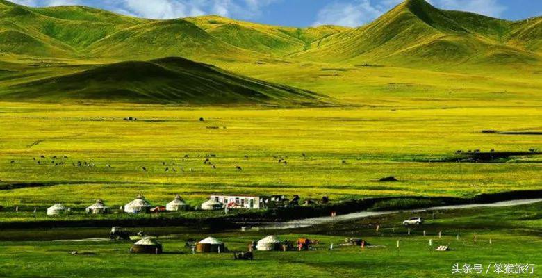 金銀灘草原由兩片草原組成:金壇和銀潭。這兩個(gè)草原覆蓋近1100平方公里,作家王洛賓與藏族女孩之間的愛情故事,一直流傳在這片美麗的草原上。