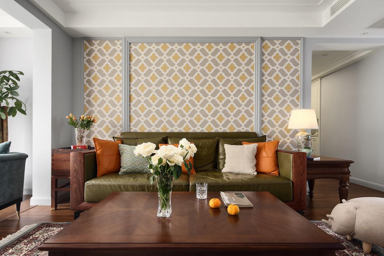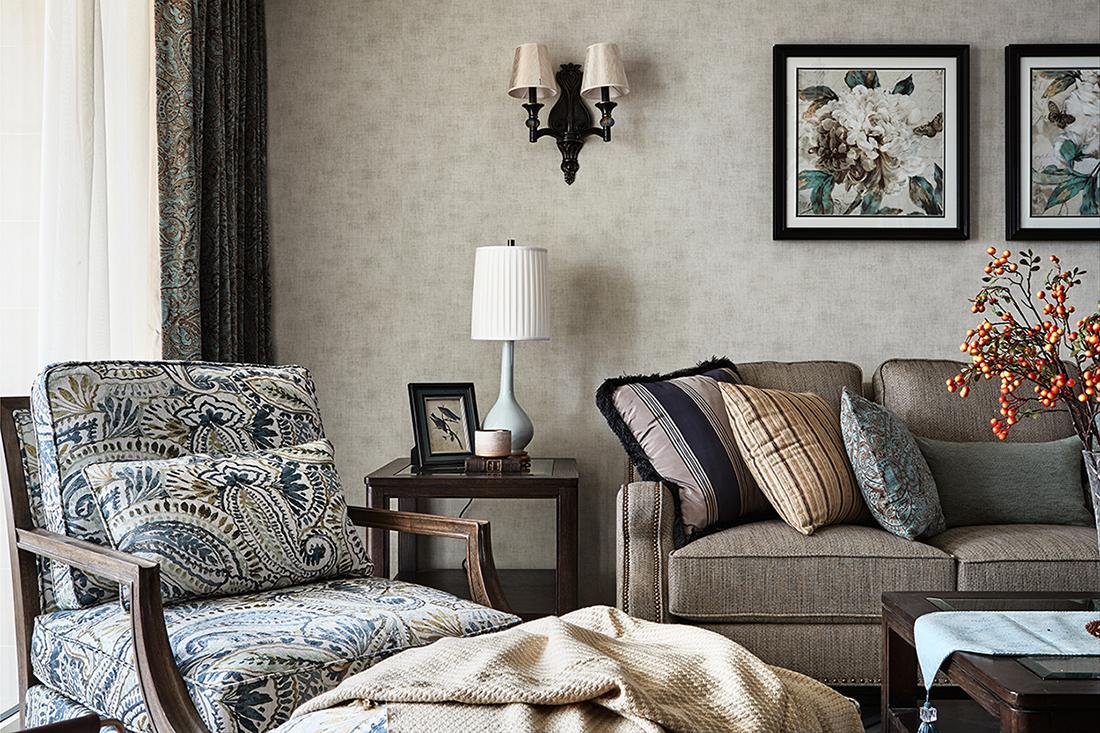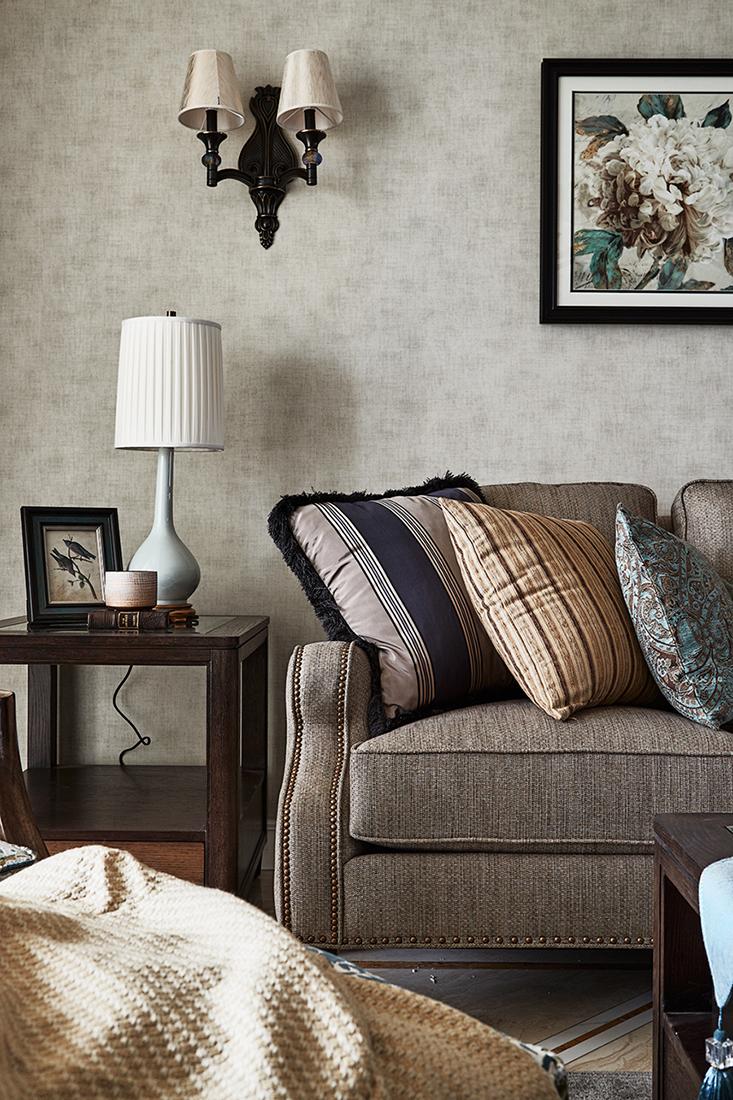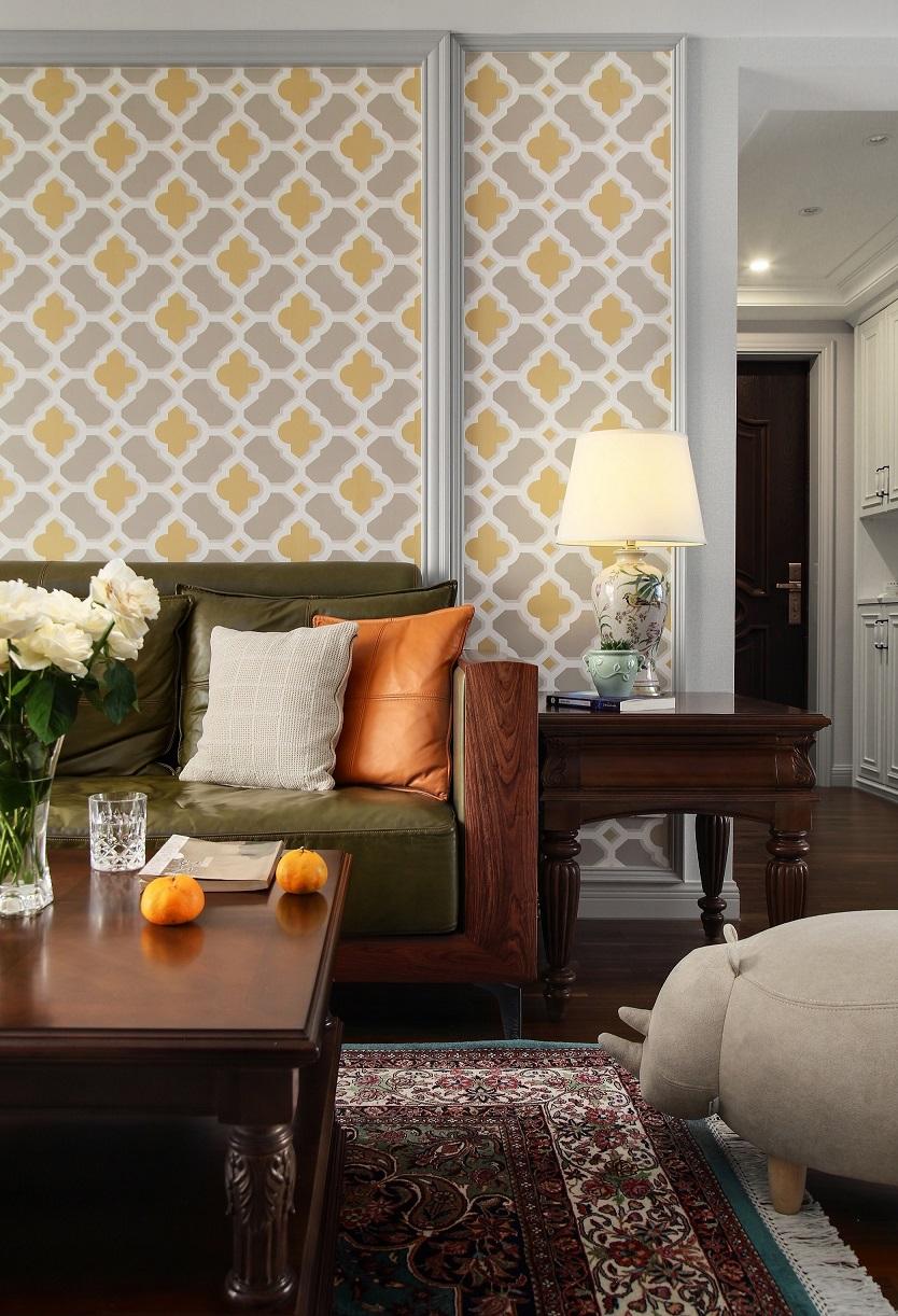 這樣的墻紙給人感覺更像一個清新文靜的“少女”,簡單的圖案排列,色彩與沙發(fā)相配,摒棄了厚重的古典美式,更多的是洗練和簡約。