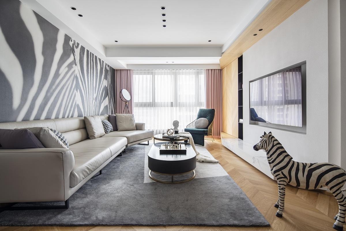以斑馬為素材設計的條紋背景墻。斑馬被認為是象征平衡與和平的力量動物。