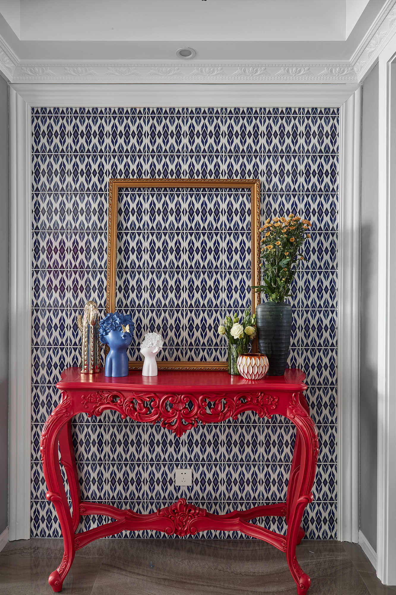 當美式家具配上幾何圖案的墻紙,帶有異域風情又不失高貴。