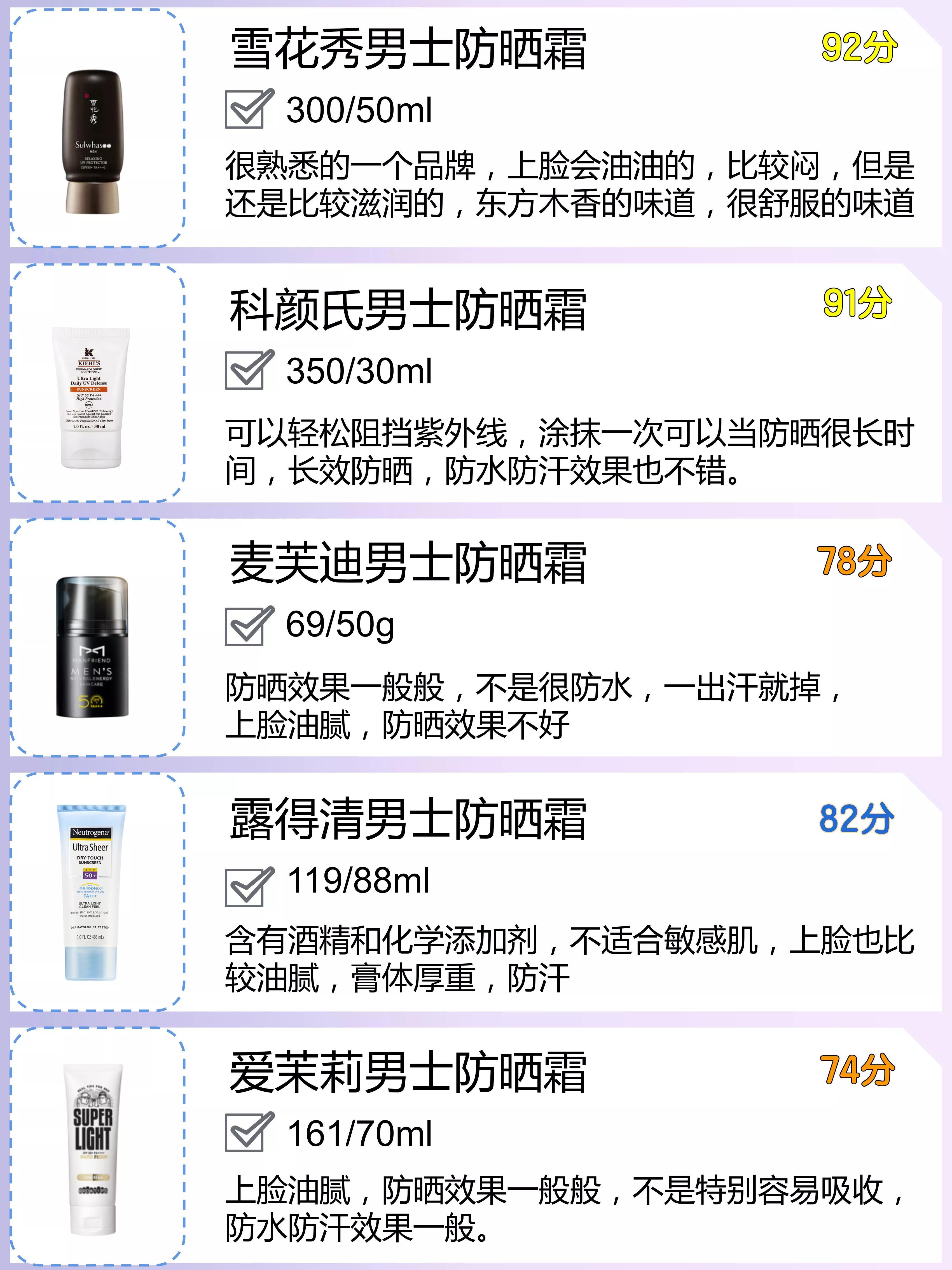 男性的皮膚都偏油性,而且容易流汗出油,這對(duì)于防曬霜的質(zhì)量要求就更高了。而以上這些防曬霜,都是主打清爽保濕,而且不顯白,涂起來(lái)也很自然。平時(shí)上街或者出去玩,都可以使用。
