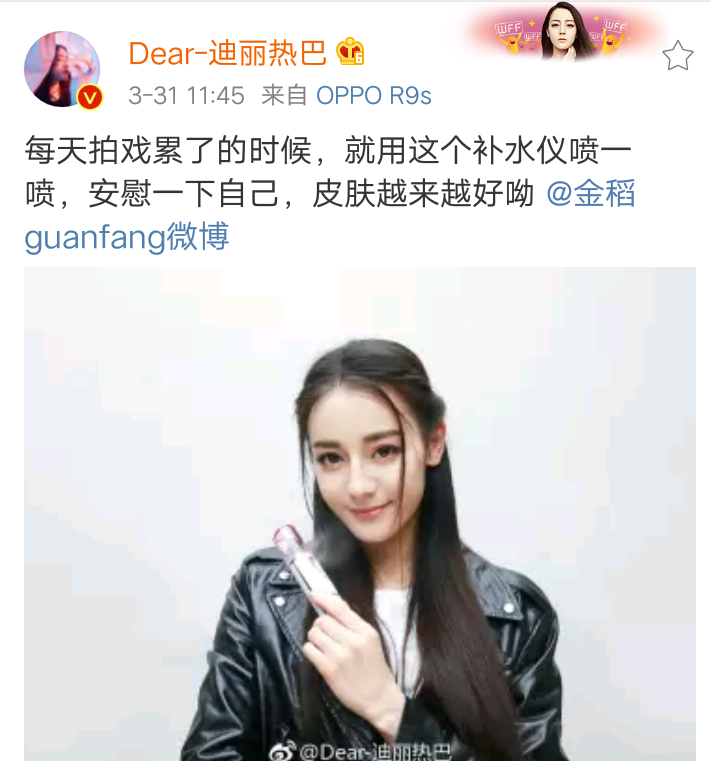 同志們,這輩子不可信的就是明星直接在微博發(fā)出的廣告代言,她們私下用的彩妝護(hù)膚品,我們?cè)谂懦龔V告嫌疑外還可以扒一扒借鑒一下,但是明目張膽的廣告以后我再也不信了!之前在迪麗熱巴的微博種草了她宣傳的補(bǔ)水儀。什么可以通過儀器把水直接轉(zhuǎn)換成納米級(jí)高溫霧狀粒子,使毛孔打開,疏通毛孔,消減皺紋等等。我覺得吹牛也得有個(gè)限度吧,納米水霧是肉眼看不到的好伐!這個(gè)的原理只是利用霧化片把液態(tài)水轉(zhuǎn)化成氣態(tài)水而已,和加濕器難道有什么兩樣?!