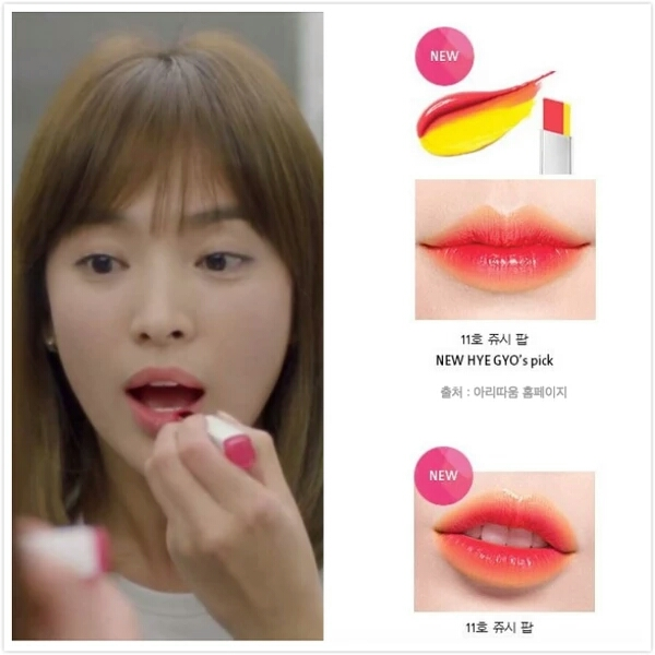 又是一支韓劇女主同款,當(dāng)年看《太陽(yáng)的后裔》看的中毒太深,看到喬妹涂這支口紅立馬下單,某寶的試色放的是西柚色+淡的橘色,真人試色后發(fā)現(xiàn),畫出來的唇妝真的不自然,而且還是一個(gè)熒光黃+熒光黃,瞬間變身葬愛家族大佬!想單涂一個(gè)顏色試色,這個(gè)設(shè)計(jì)又不好涂,果斷棄之!
