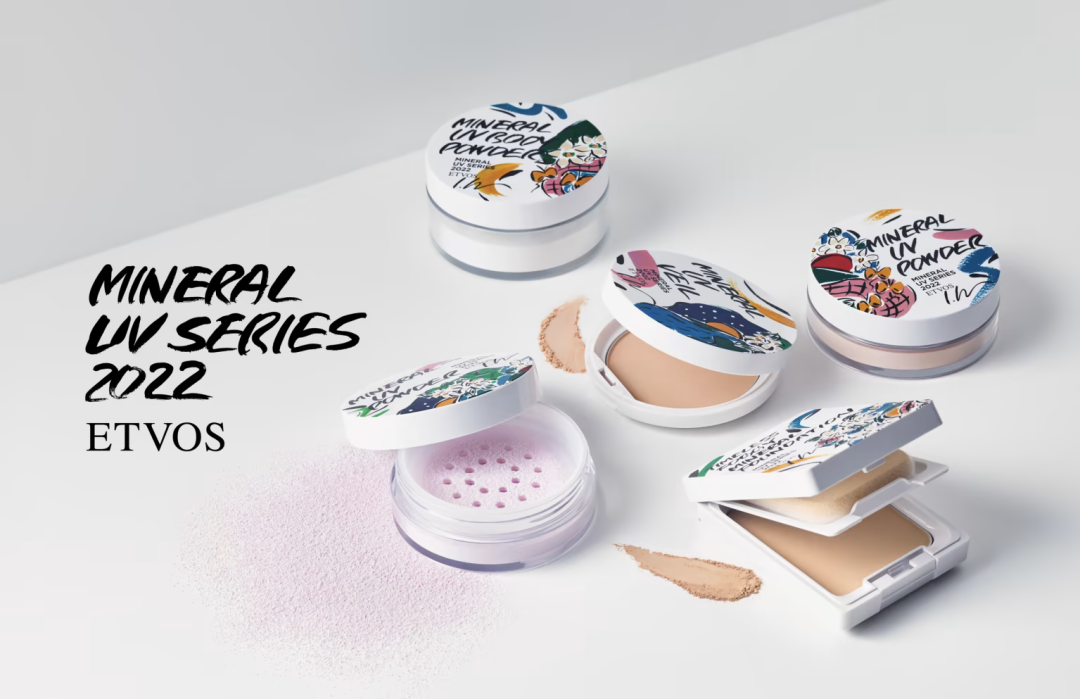 ETVOS 廣受歡迎的礦物防曬系列與畫家Lee Is Mida 合作推出限量包裝,“紅光透射礦物”和“柔焦礦物”等功能性礦物量均有增加