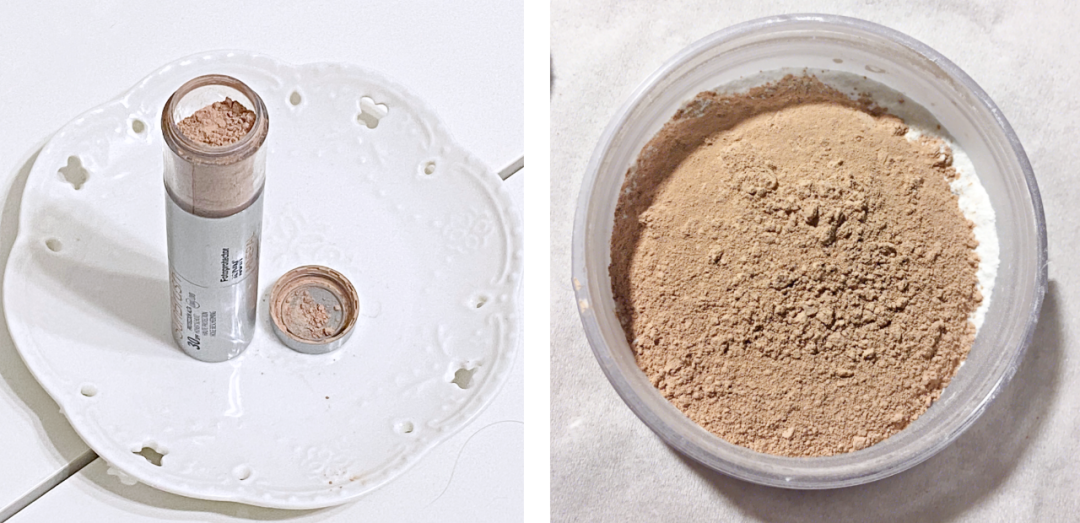 直到有一天,我扭動后蓋才驚覺可以把它倒出來。倒出來之后,你將得到一盒看起來是古銅色的散粉。哇哦,總比之前好。