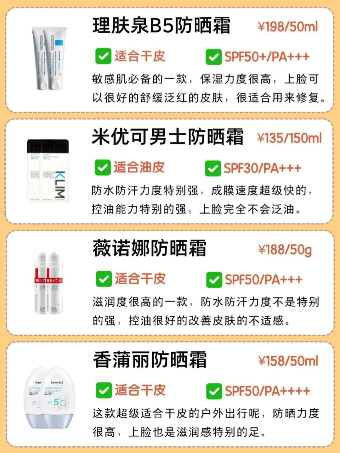 不同膚質(zhì)不同防曬力不同價位的防曬霜供大家挑選喔~