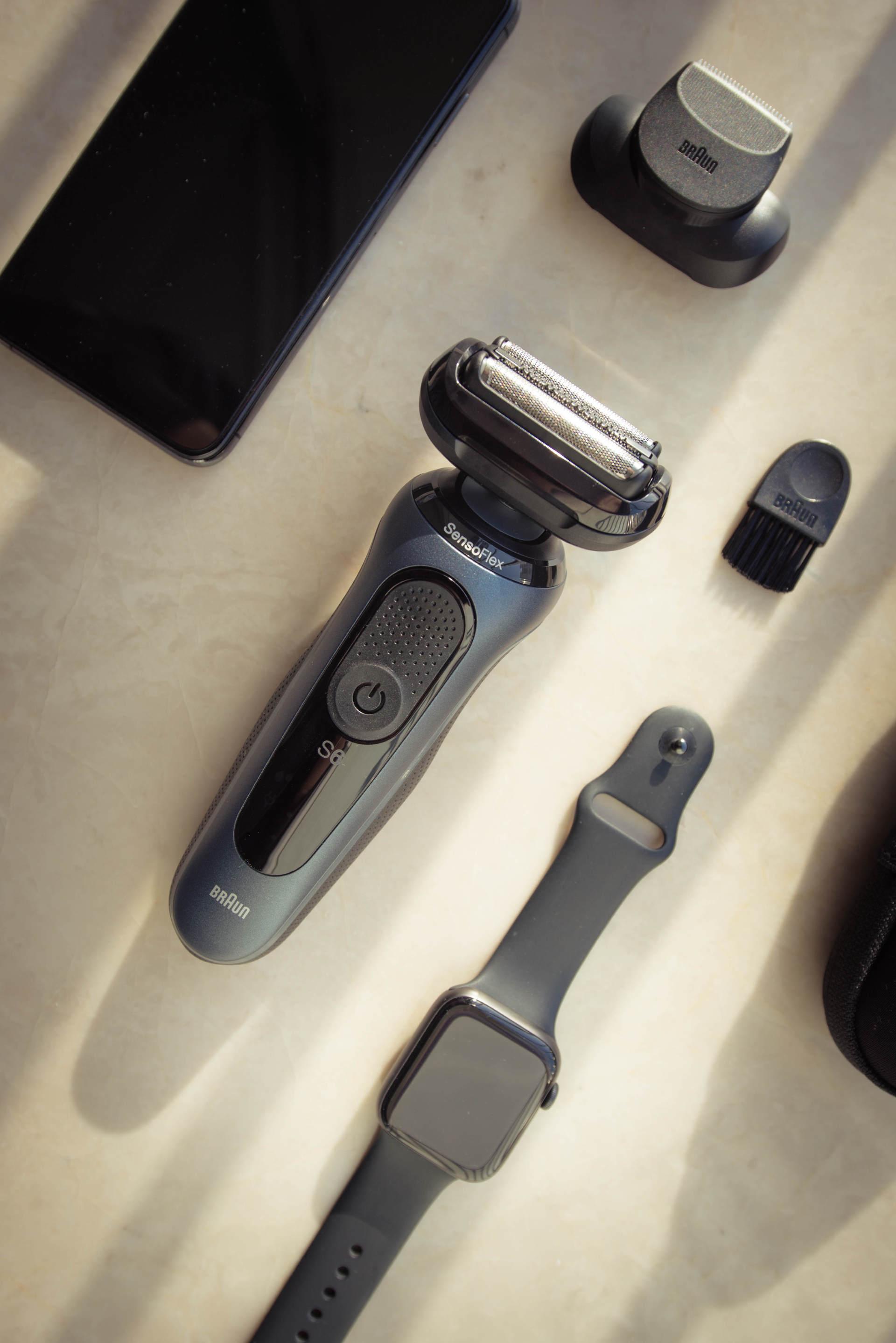 第三步:刮胡子我用的博朗的剃須刀, 靈敏微調(diào)刀頭消滅小胡茬, 干濕雙剃, 支持鬢角修剪, 輕松造型。