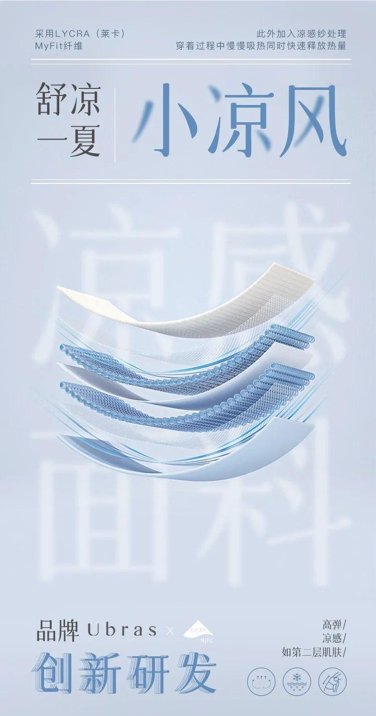 一是“小涼風(fēng)”采用了Ubras創(chuàng)新研發(fā)“涼感紗”面料,觸感清涼,吸濕排汗,貼身穿著涼爽親膚。