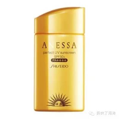 資生堂安耐曬金瓶2014版。防曬劑為氧化鋅、二氧化鈦、Octinoxate、Parsol SLX、Unival A plus、Tinosorb S。14版以后就基本沒有防曬死角了,所以pa值升為++++,防水卻很好卸。安耐曬被Allie亂打仗以及日元匯率的影響下便宜了點,讓消費者得利。金瓶在亞洲一直都賣得很好,以至于很多人一說防曬就想到這款,實屬殺(上)人(山)越(下)貨(海)必備。