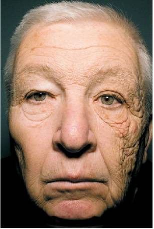 這張圖片來自“The New England Journal of Medicine”。圖中是一位69歲老先生的臉。左右臉的差距,是因為他開了28年的卡車,左臉受到的陽光照射比右臉要多得多。這就是差距!
