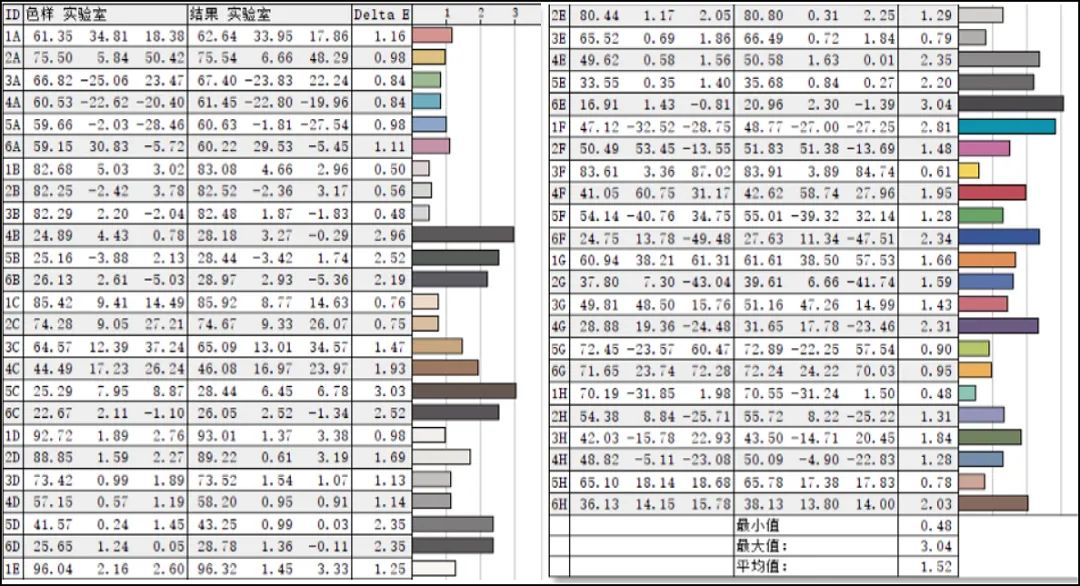 ▲原生色域下的色準(zhǔn)測(cè)試:平均ΔE為1.52,小值為0.48,大值也只有3.04,算是不錯(cuò)的水平。
