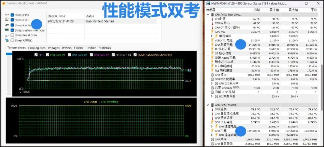 但實(shí)際上,我們做了這樣的測(cè)試:在奧創(chuàng)智控中心把模式設(shè)為“性能”,此時(shí)雙考功率上限是處理器35W+顯卡160W▼: