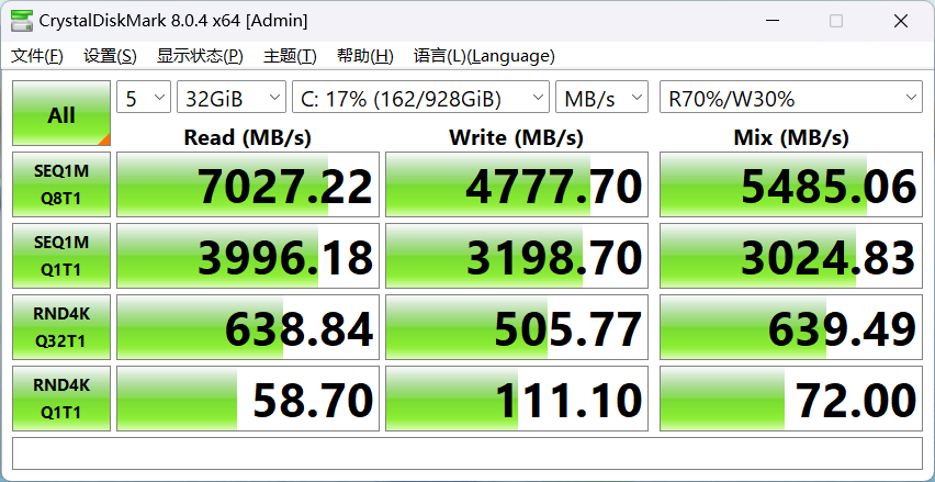 ▲這是該機(jī)的1TB PCIe4.0×4 SSD的理論速度表現(xiàn),相當(dāng)不俗,但也是電腦的應(yīng)有水準(zhǔn)。