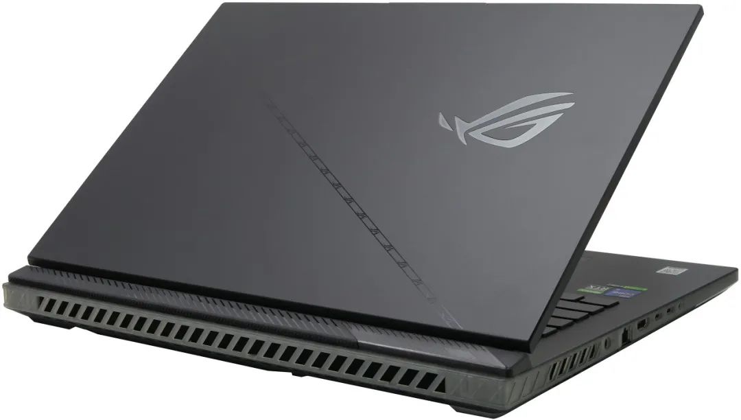 ▲該機(jī)的C面上部采用了所謂的“半透明設(shè)計(jì)”,比較新穎;而腕托右側(cè)區(qū)域的斜向ROG LOGO裝飾條使得C面不那么單調(diào)(畢竟是18英寸機(jī)型,腕托“留白區(qū)域”是比較大的)。