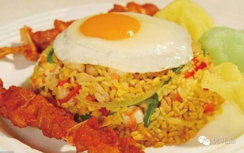 印尼炒飯是巴厘島比較受歡迎的美食。印尼炒飯里主要是放豬肉、雞肉、蔬菜,飯上蓋一個(gè)煎雞蛋,海鮮炒飯就是把肉換成蝦仁之類(lèi)的,味道和中餐口味比較相似。