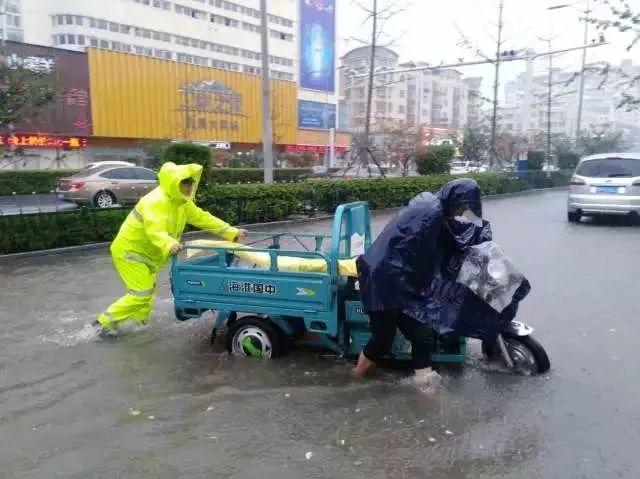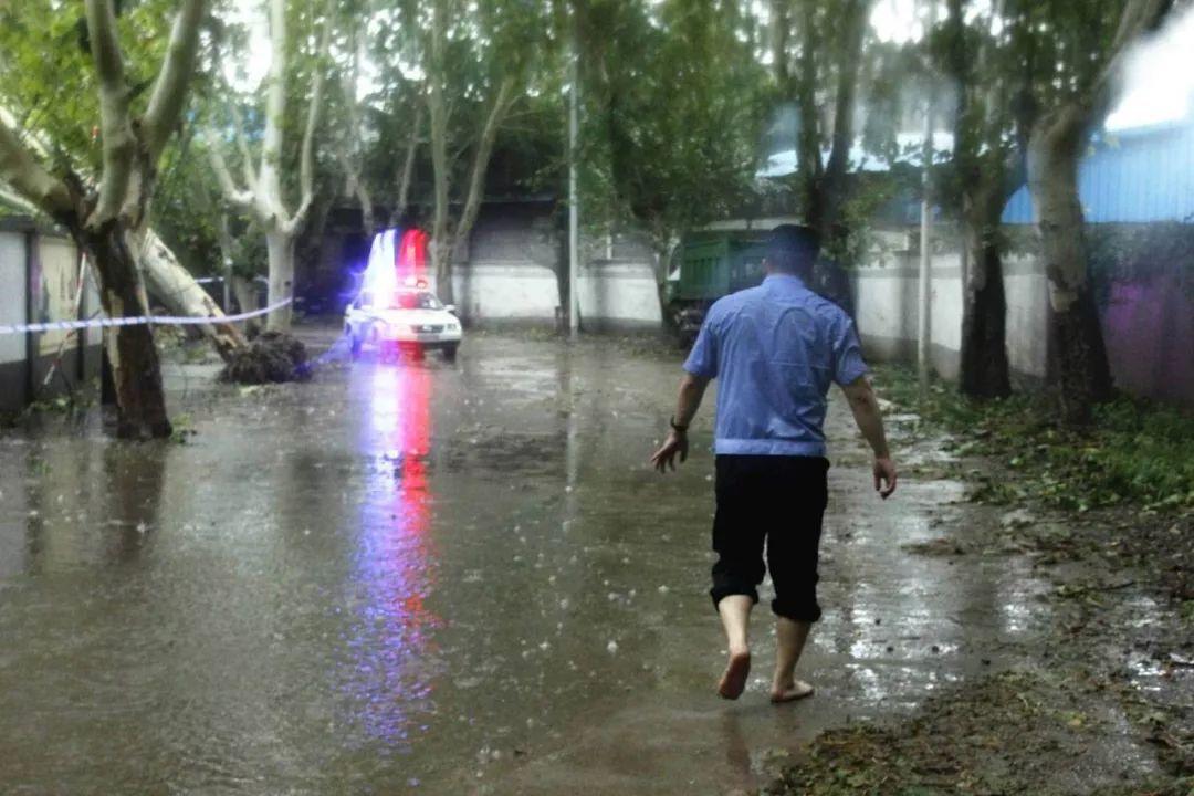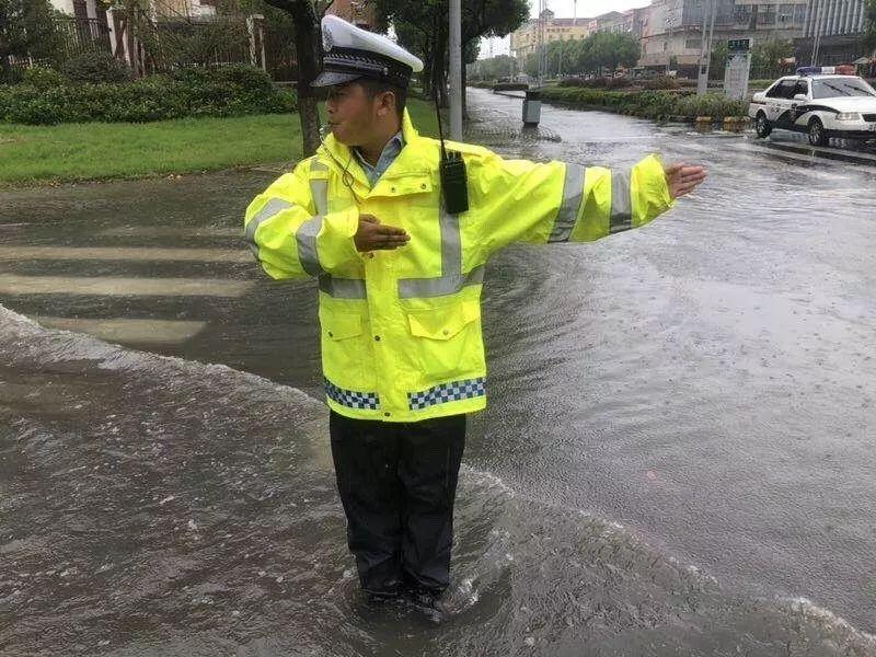 南京暴雨,交警赤腳上陣
