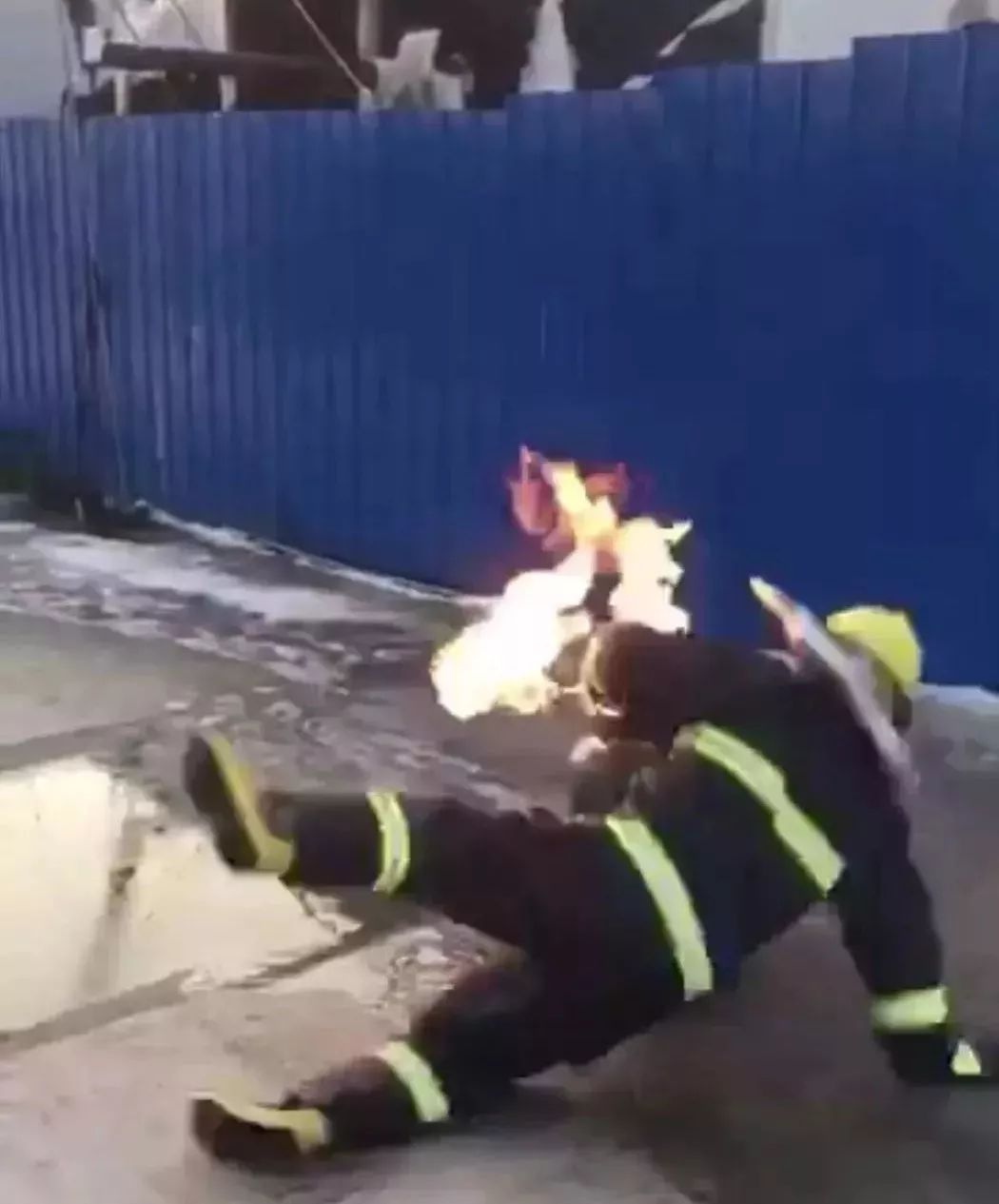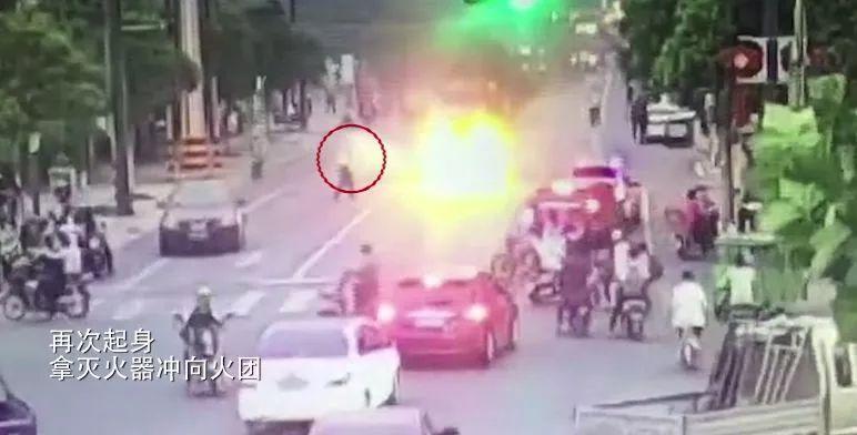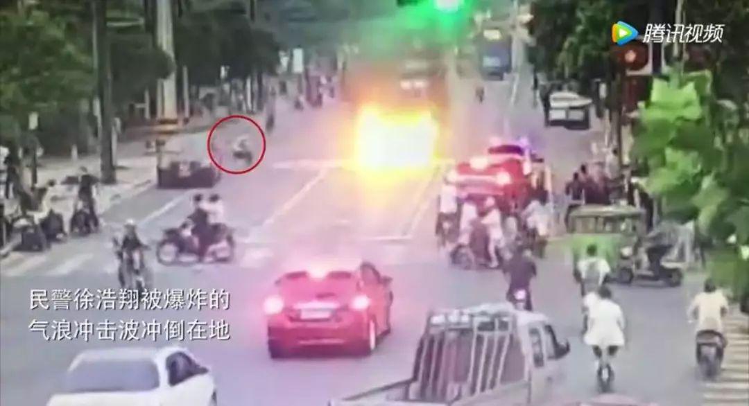 爆炸的熱浪將交警沖倒在地