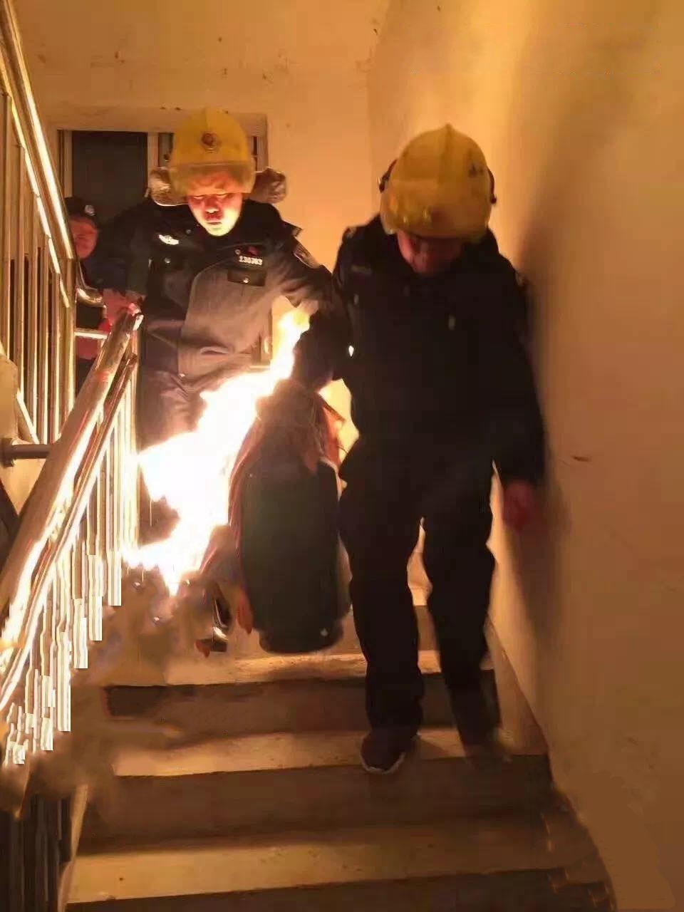 輔警宗凱拎著燃燒的煤氣罐
