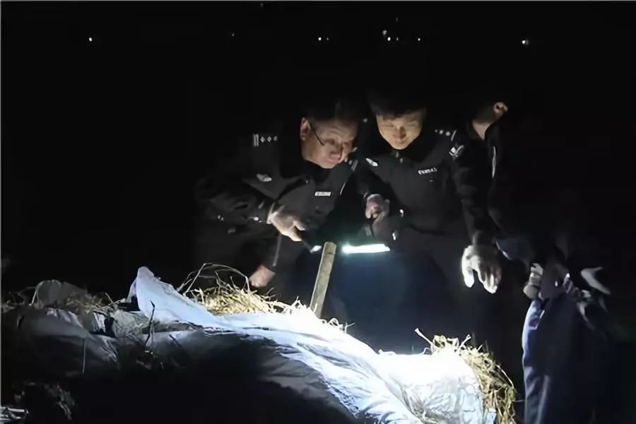 民警們?cè)诤谝怪醒策?/p>